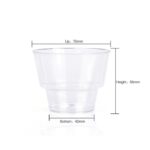 Clear disposable plastic dessert cups perfect for serving individual portions of mousse, pudding, parfaits, and more. Lightweight, sturdy, and hygienic—ideal for parties, catering, and food service.