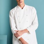Unisex Chef Jacket Long Sleeve. Fits Men and Women. Restaurant Kitchen Cook Coat Catering Waiter Baker Uniform. Simple and smart design gives professional look.